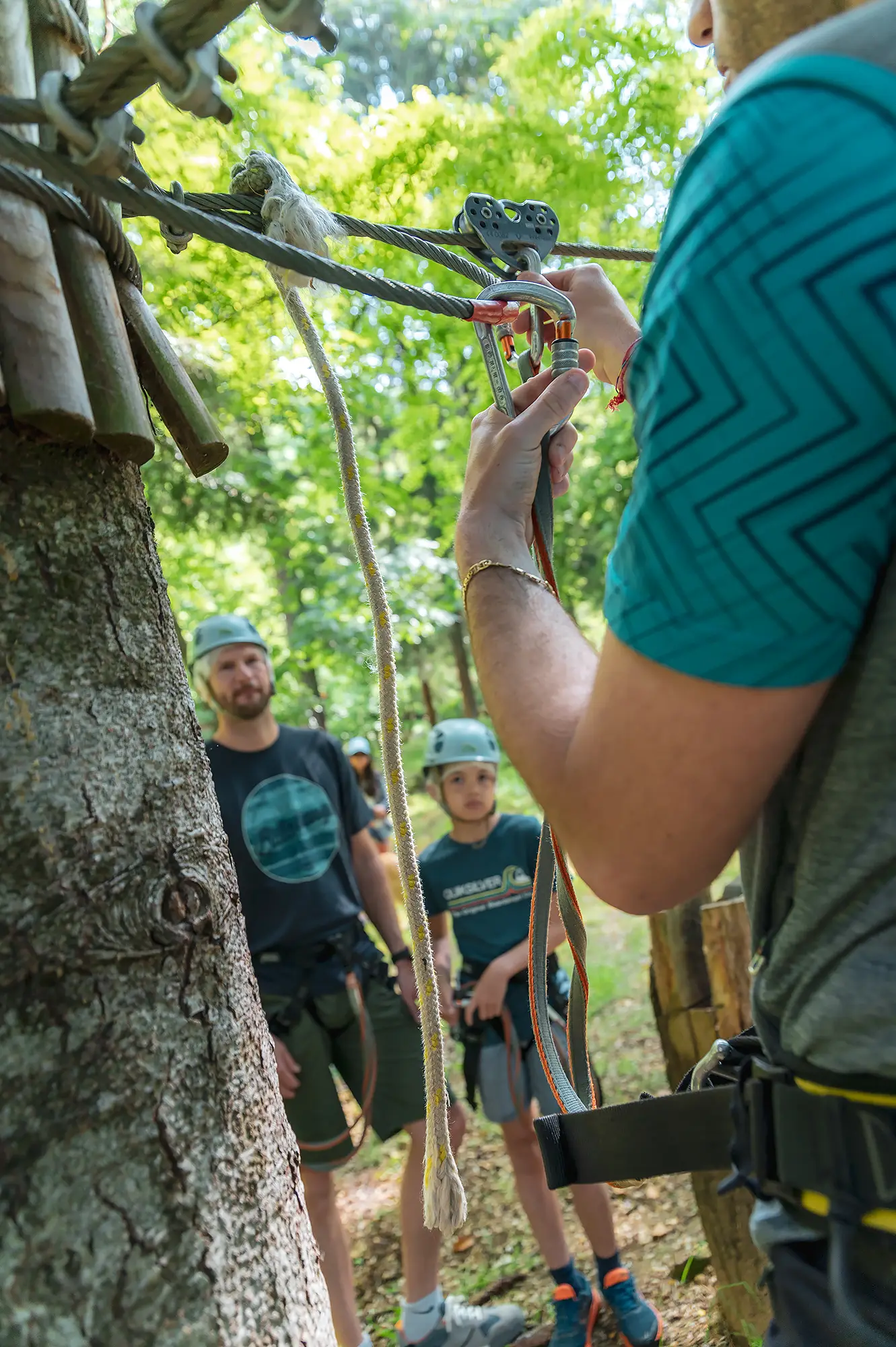 Per i ragazzi e adulti, offriamo percorsi avanzati che variano in difficoltà dal verde al nero. Questi percorsi includono sfide come salti con liane, ponti tibetani e zip-line che raggiungono fino a 15 metri d’altezza, garantendo un’avventura emozionante per tutti.