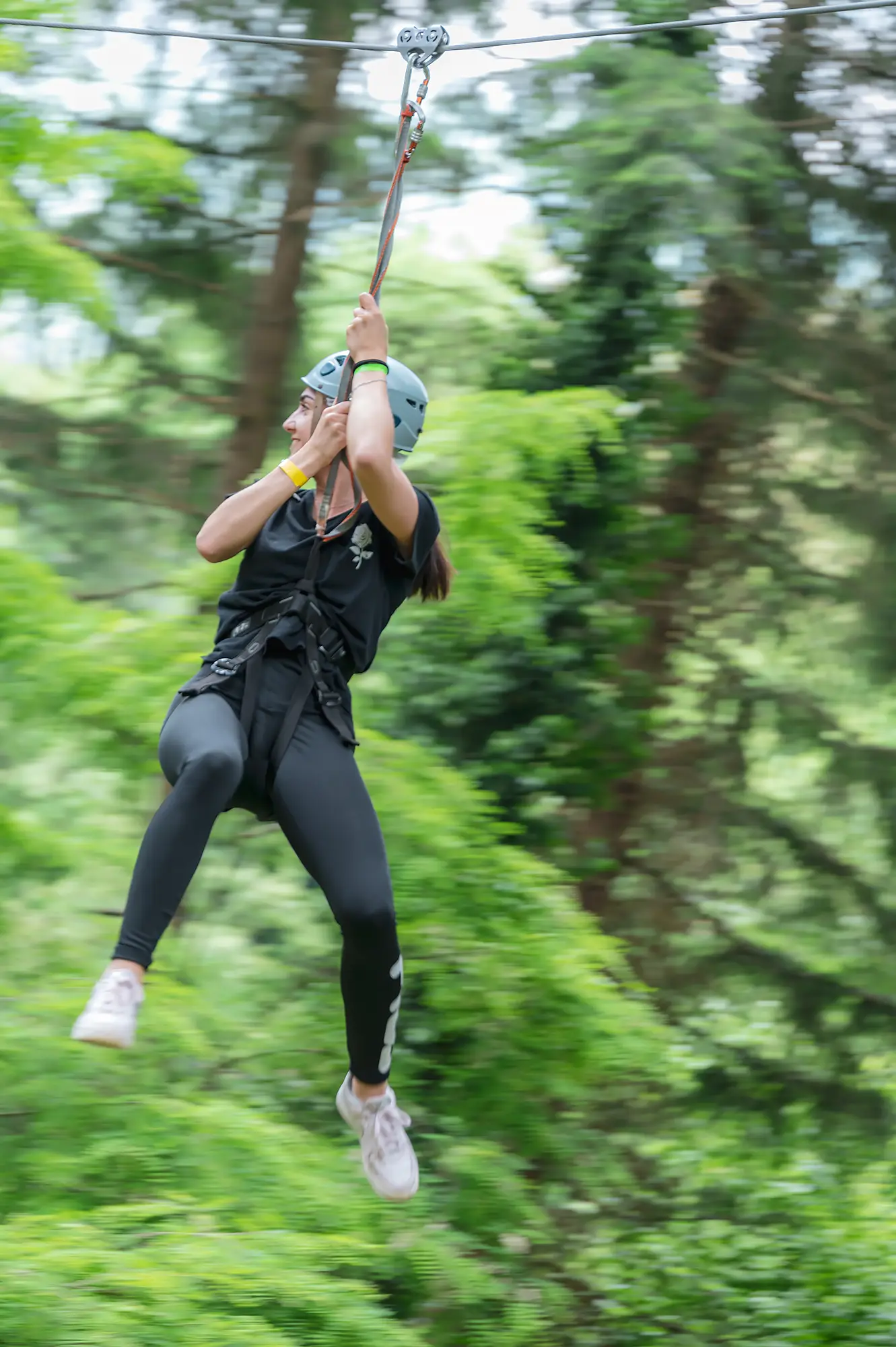 Always under the supervision of an adult on the ground, and our staff, they can try their hand at tarzaning, challenging their skills.