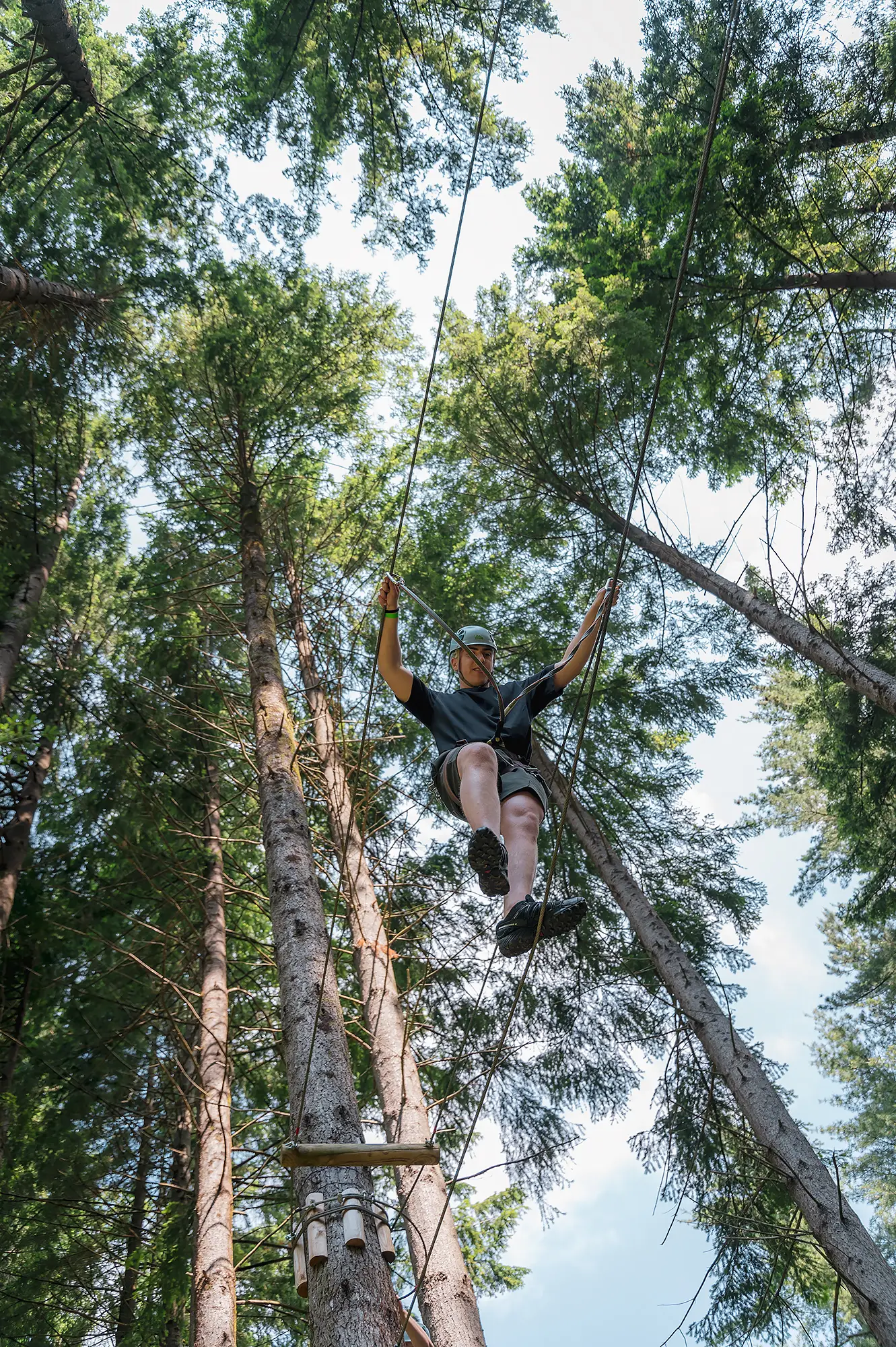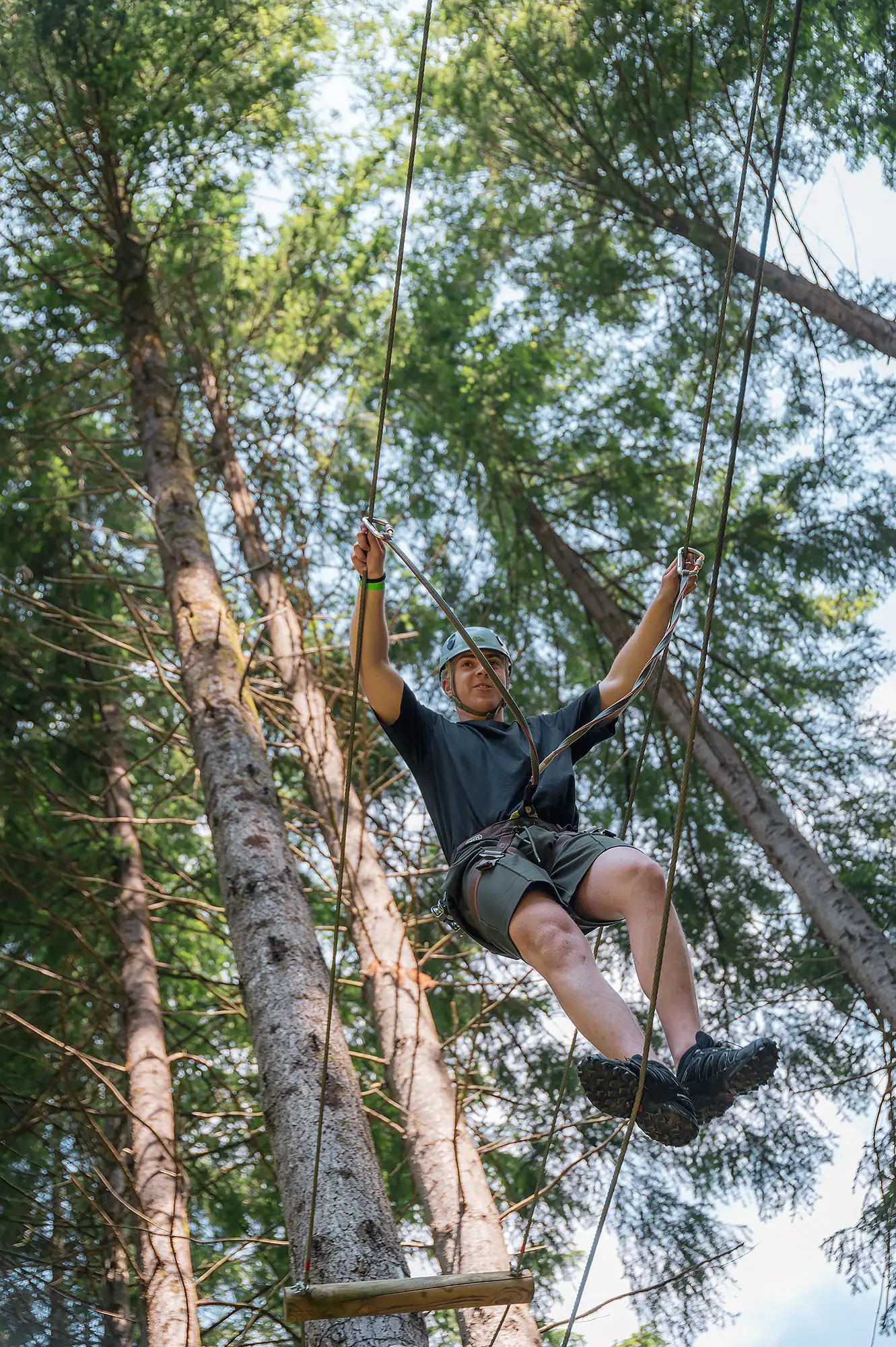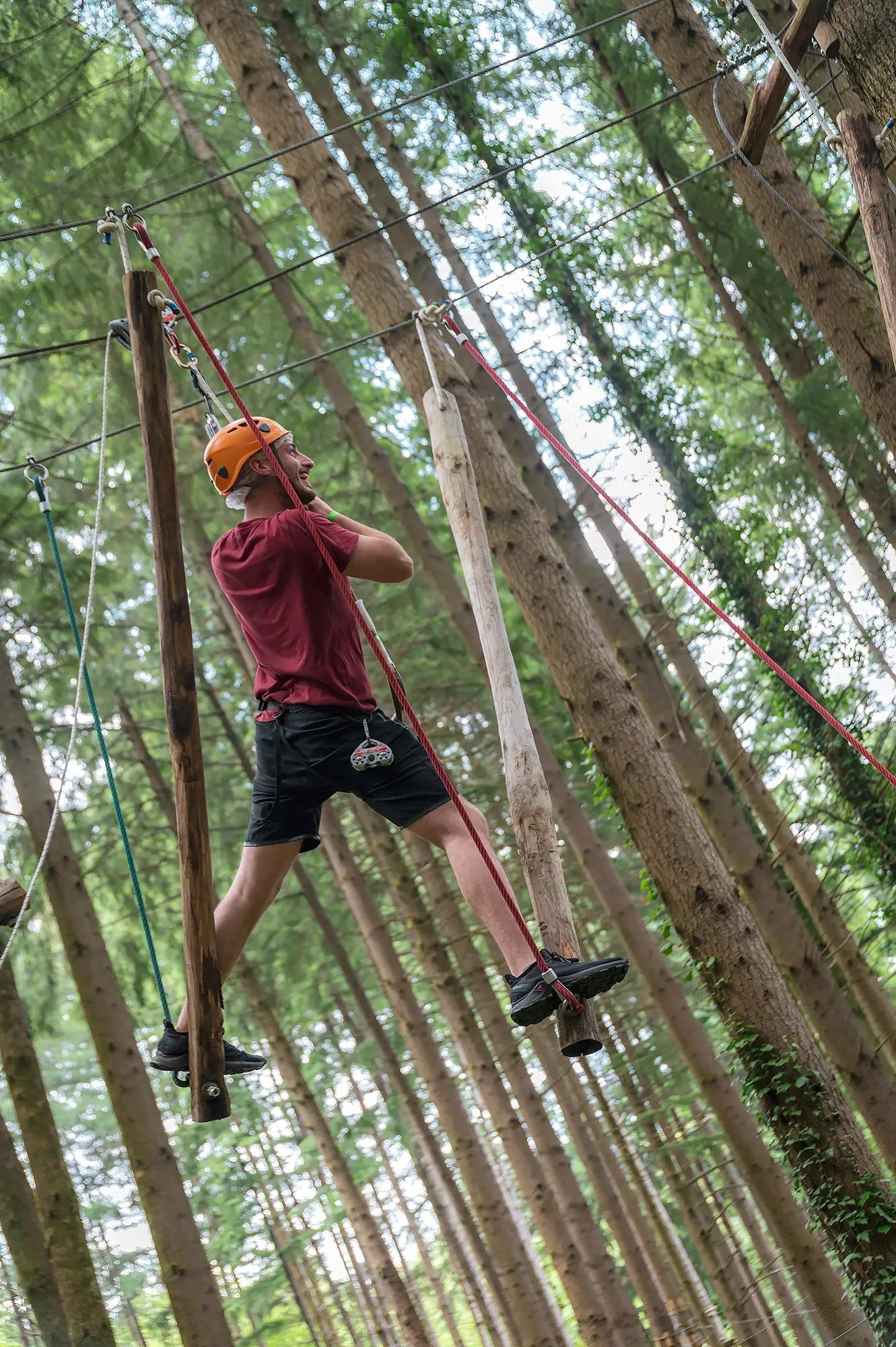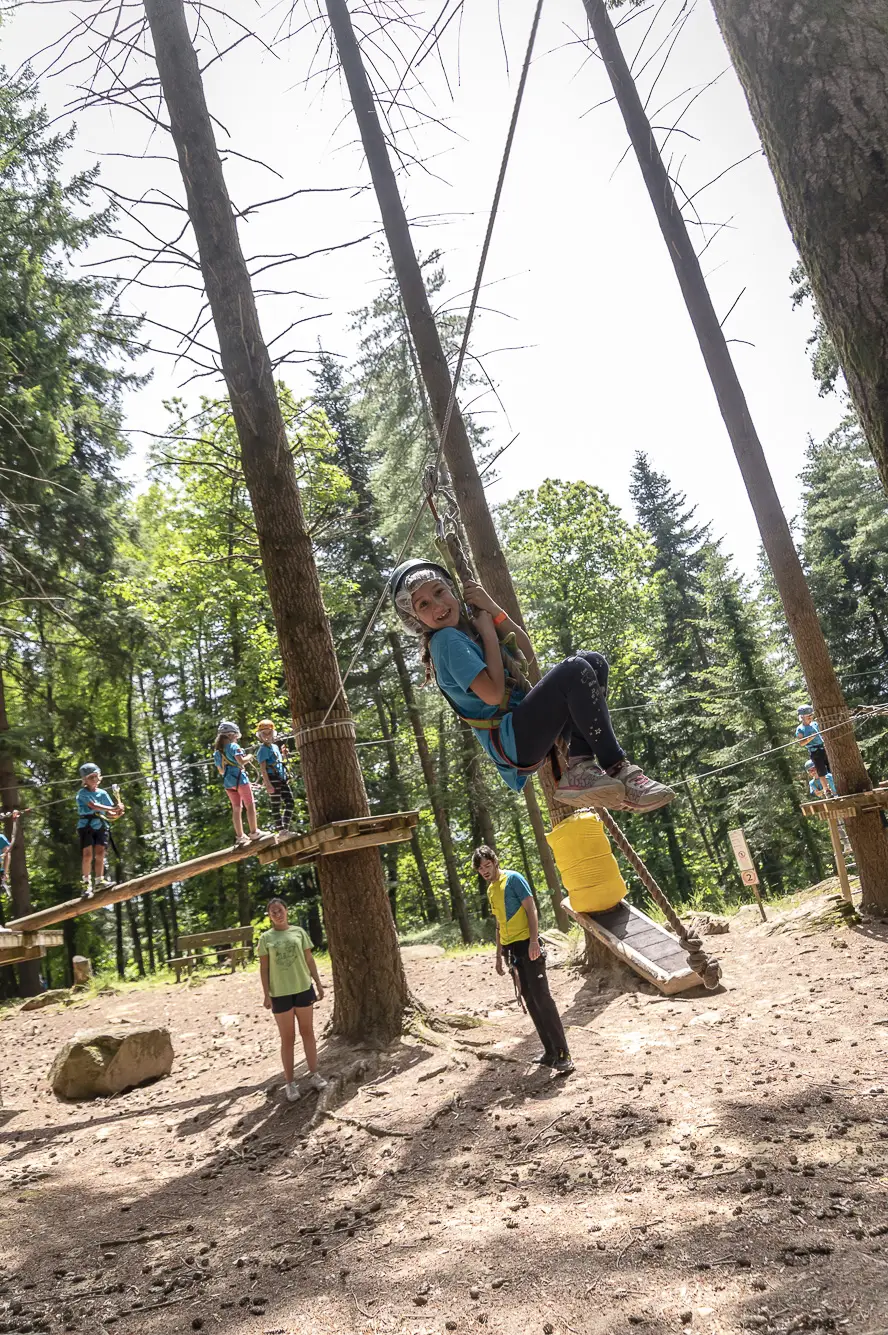 Always under the supervision of an adult on the ground, and our staff, they can try their hand at tarzaning, challenging their skills.