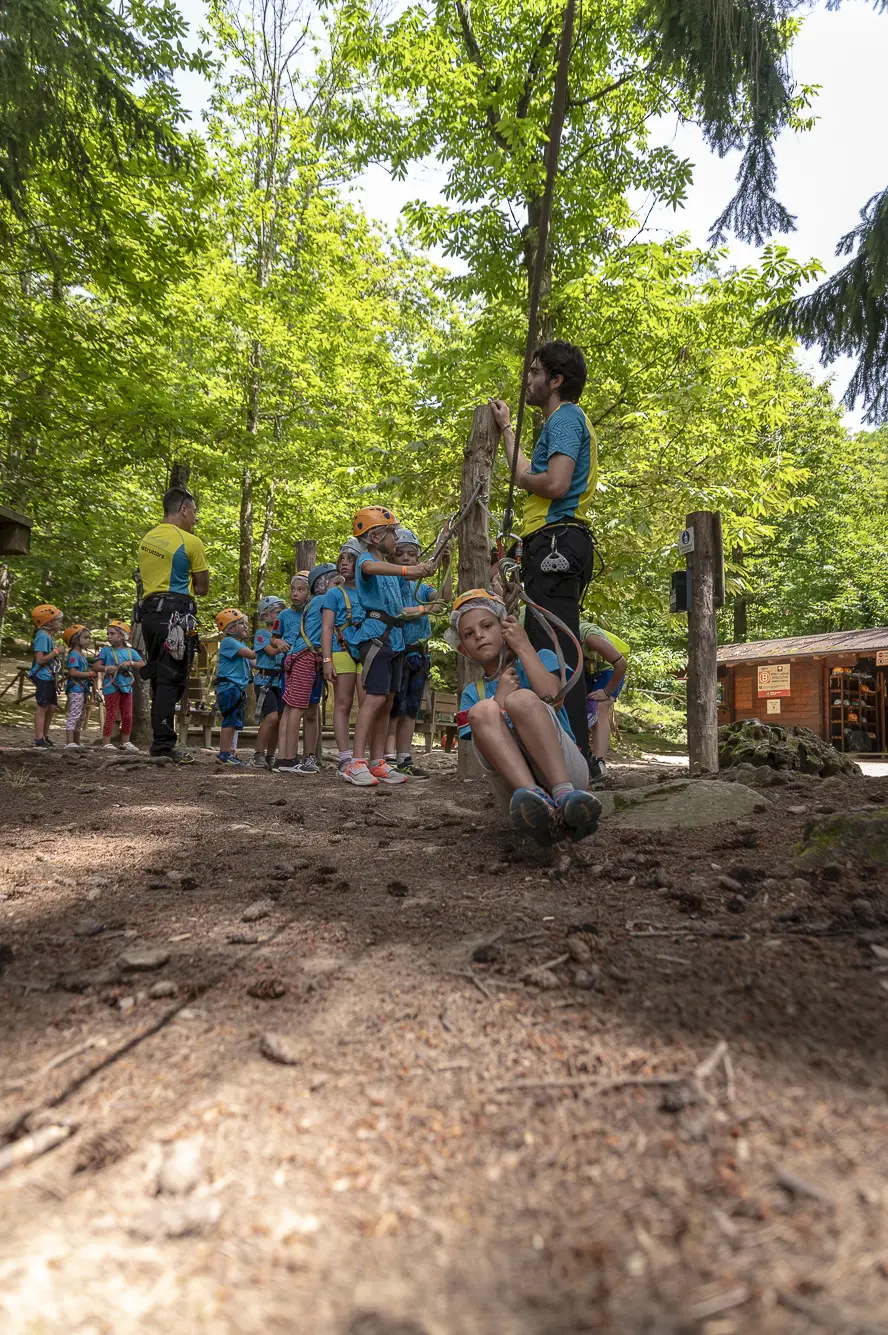 They too will be able to experience the thrill of flying down the cable car on the green course: 100 metres of free descent at a height of 5 metres above the ground! and experience the first challenging balance games on the blue course.